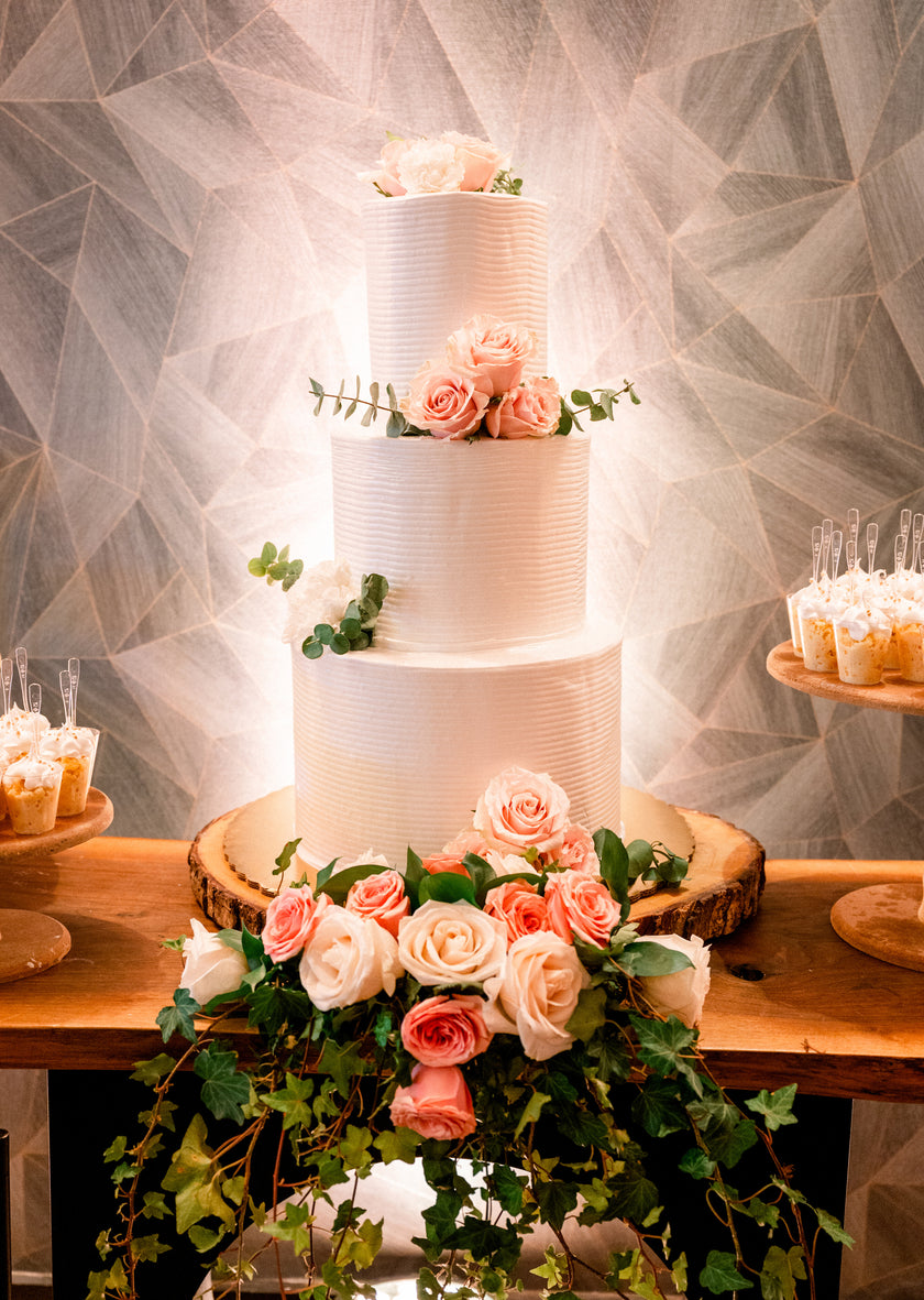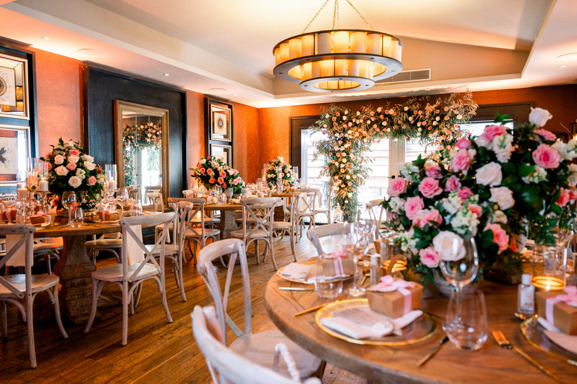 En esta exquisita composición, las rosas fueron las protagonistas indiscutibles, desplegando una naturalidad y delicadeza que impregnaron cada rincón de la decoración, armonizadas con una mezcla de follajes en tonos verde ceniza que complementaron de manera exquisita el estilo del salón.